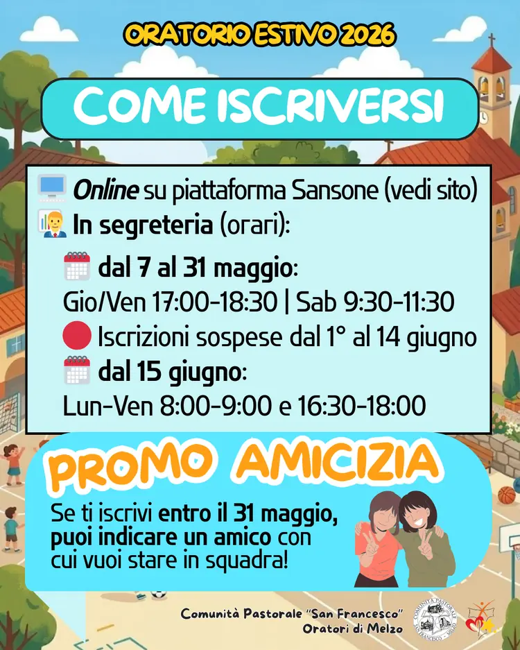 Ecco le prime informazioni sull'Oratorio Estivo 2026. Clicca sull'immagine e scarica le informazioni! O clicca qui per andare alla sezione dedicata.