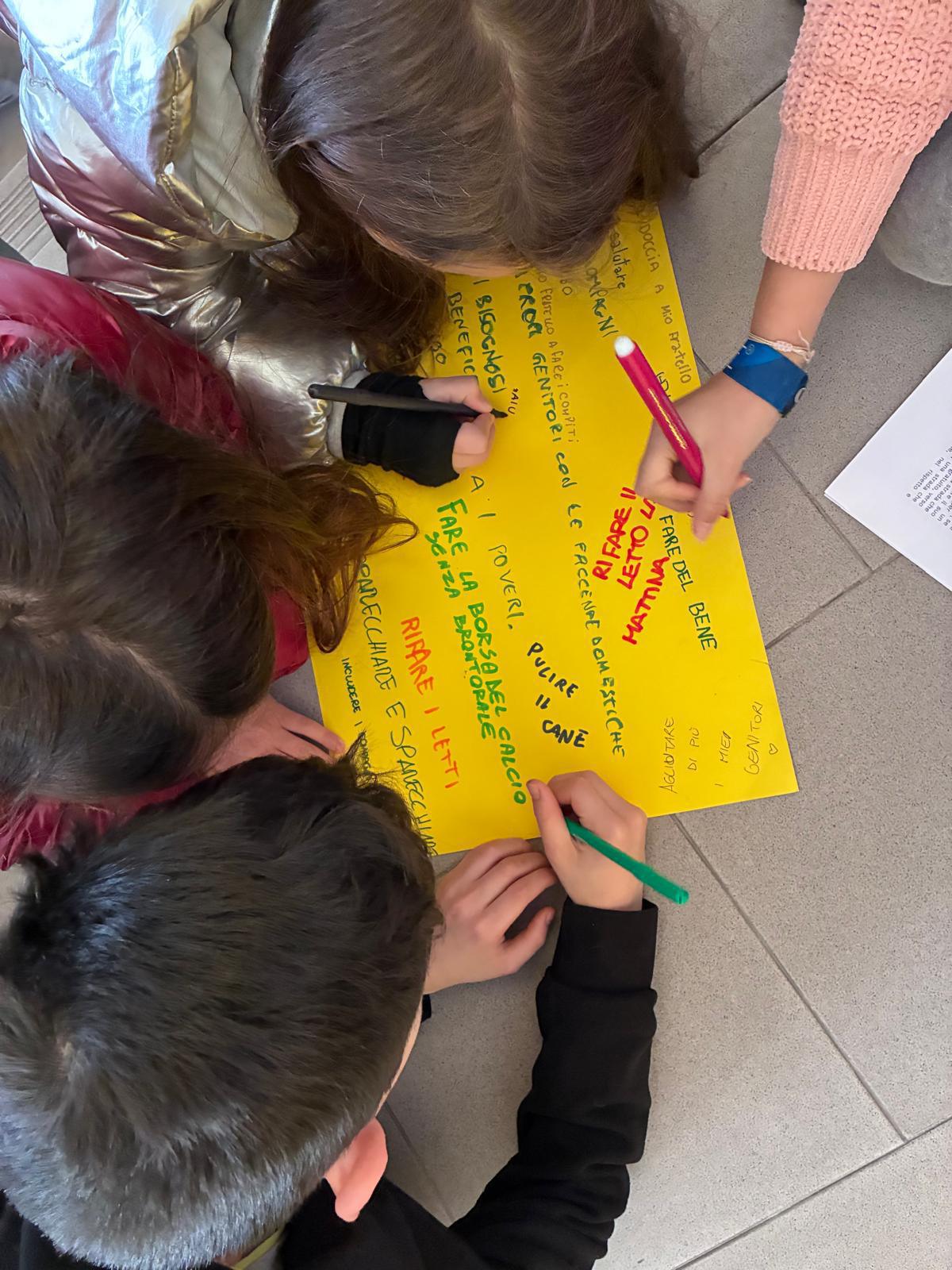 I bambini hanno costruito i sassolini del peccato che appesantiscono il loro cuore, come le bugie, e poi hanno scritto o disegnato ció che invece li rende liberi e amici di Gesù: chiedere scusa, ascoltare gli altri, aiutare gli amici.