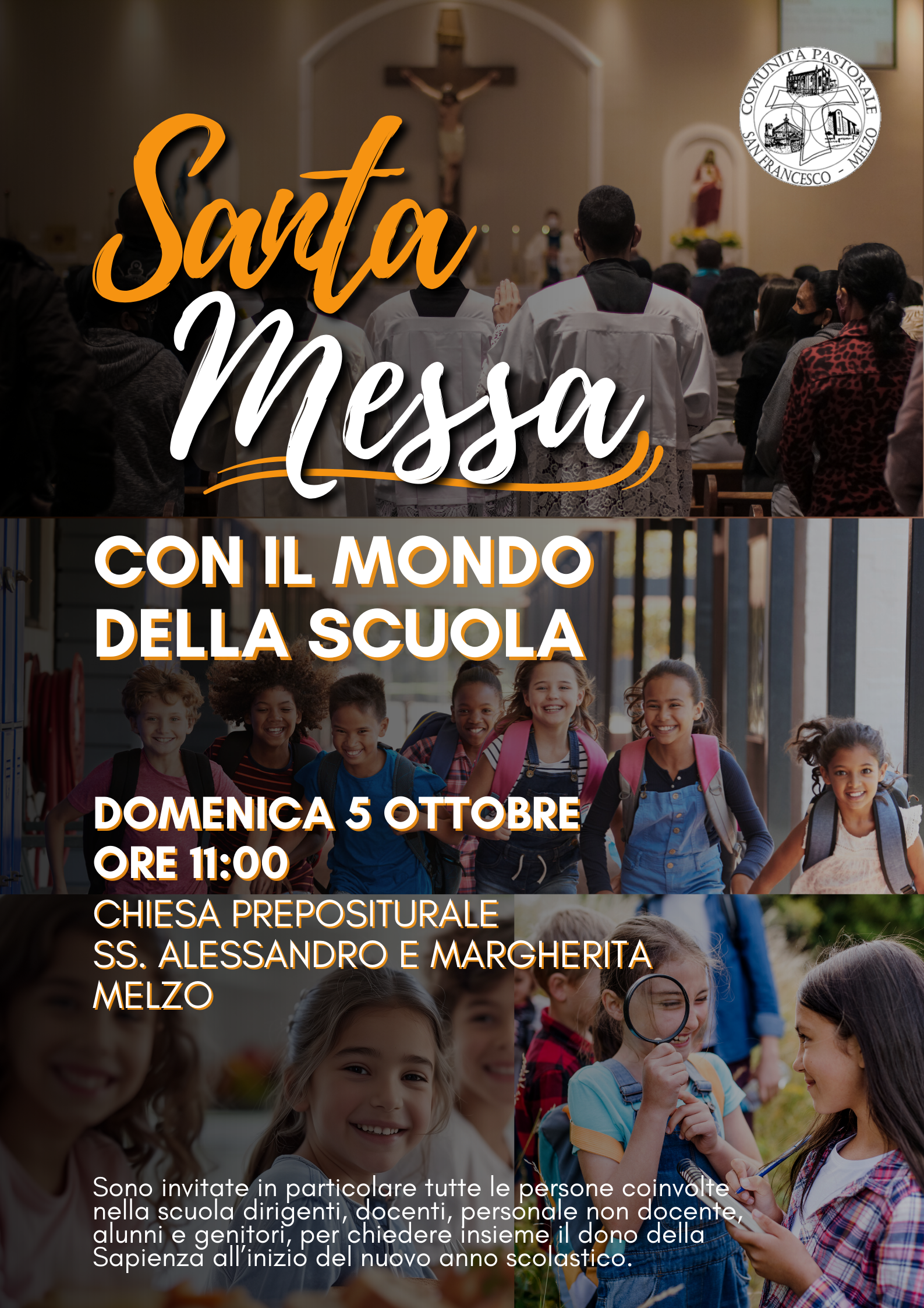 S. Messa a cui sono invitate in particolare tutte le persone coinvolte nella scuola: dirigenti, docenti, personale non docente, alunni e genitori, per chiedere insieme il dono della Sapienza all'inizio del nuovo anno scolastico